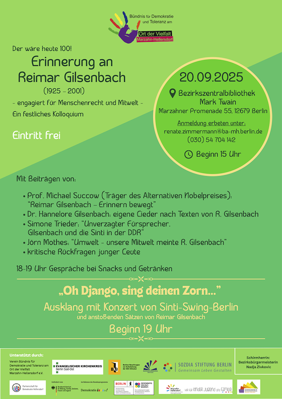 Buchpremiere/Lesung mit Liedern aus: Reimar Gilsenbach, Biografisches Selbstbildnis „Wer im Gleichschritt marschiert, geht in die falsche Richtung“, gemeinsam mit Dr. Harro Heß (Mitherausgeber) |