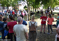 Friedenslieder: Brodowiner Musiker laden ein zum Mitsingen am Friedenspfahl auf dem Dorfanger. Stephan Rutscher, Jens Jensen, Hannelore Gilsenbach, Michael Metzler, Helles Weber, Steffen Grossert, Michelle Beittel, Leila Rothe