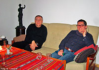 | 07. 11. 2009, Neue Brodowiner Gespräche (12) im Choriner LandSalon e. V.: Thomas Rosenlöcher (l.) liest Gedichte und Tagebuchaufzeichnungen. Falk Zenker, Gitarrist, begleitet den Abend. |